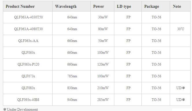 QLF0×3x series are high power FP lasers. The laser is mounted in a TO-CAN package with a monitor photodiode. Both anode and cathode common types are available.