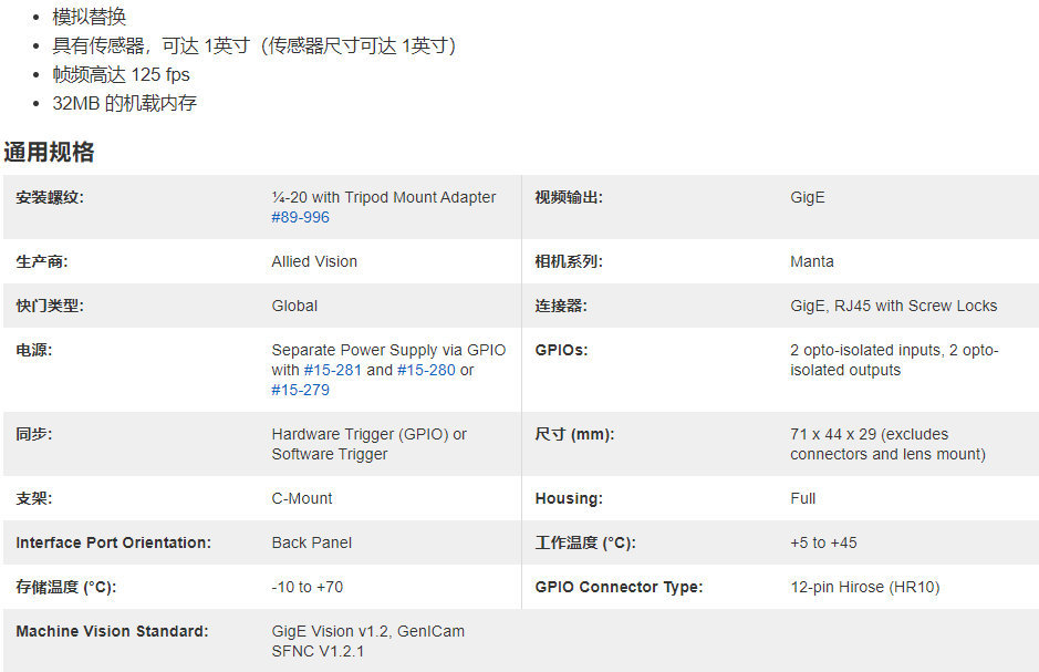 Allied Vision Manta 千兆以太網相機